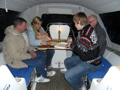 Gelegentlich sollen es auch über 10 o gewesen sein, nur auf dem Wasser bleibt es lausig kalt. So tasten wir uns am Freitag mit einem Probeschlag raus auf die Ostsee, erobern das „Piratennest“ in Orth/Fehmarn und entdecken ein altes Spiel, bei dem man sich nicht ärgern soll, im Lichte der Petroleumfunzel wieder neu. Rund Fehmarn lässt uns zwar der Wind, aber wenigstens die Sonne nicht im Stich. Dass wir dazu gleich auf der ersten Reise 2 x Schweinswale im Fehmarnbelt sichten und an die gsm melden können, verdanken wir der glatten See. Erst als wir in Burgtiefe festmachen, frischt der Wind wieder auf. Unverschämt.