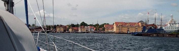 Westlich Avernakø verlässt uns der Wind dann ganz, die Maschine muss uns nach Faaborg schieben. Axel fährt uns heute in den Hafen und wird in der engen Boxengasse ganz schön gefordert. Am Ende liegen wir nach schon mal 60 sm neben einer Crew vom British-Kiel-Yachtclub. Nigel fällt mir ein, der vor kurzem „meine“ Segelschule in Hannover (www.maschseenord-segelschulehannover.de) von Hans übernommen hat und von dem ich überhaupt weiß, dass es diesen Yachtclub gibt. Ich frage die vergnügte Crew, ob sie Nigel kennen. Klar kennen wir den und ich soll ihn herzlich grüßen – was hiermit geschehen ist.