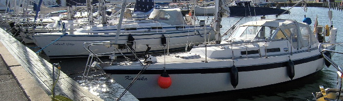 Doch zurück nach Heiligenhafen: Der Versuch, die Umlenkrolle für die Reffleine der Genua in Heiligenhafen auszutauschen oder wenigstens zu reparieren findet erst bei Holger ein halbwegs erfolgreiches Ende. Okay, das Ersatzteil ist bestellt. Dafür steigt die Crew ins Manövertraining ein und gewöhnt sich erst einmal an einige Maschinenmanöver.