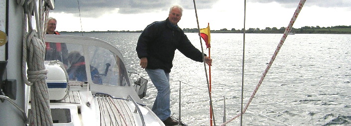 Ein Foto von den Trainings haben wir noch. Der Skipper wird immer wieder die „Boje über Bord“ werfen und darf sie dann auch gleich selbst wieder aufnehmen. Wie, ohne Schwimmweste? Peinlich!