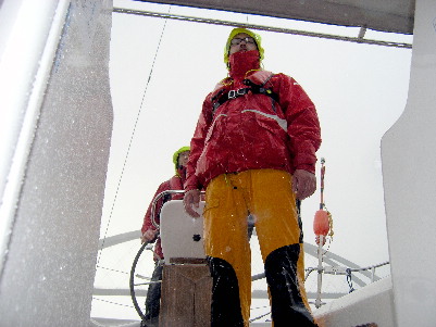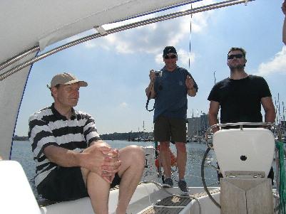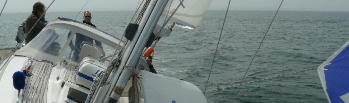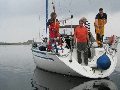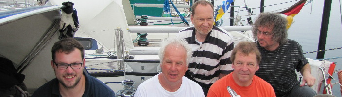 Peter ist mit an Bord, Matthias, Felix und Michael - nebenbei auch noch Smutje - prima. Alle bereits erfahren, dazu neugierig und hoch motiviert. Aber Wundertüte? Naja, keiner kennt halt den anderen. An Bord dann Teambildung vom Feinsten mit Bonn, Nürnberg, Berlin, Zwickau und dem Skipper aus Hannover. Klappt prima.
