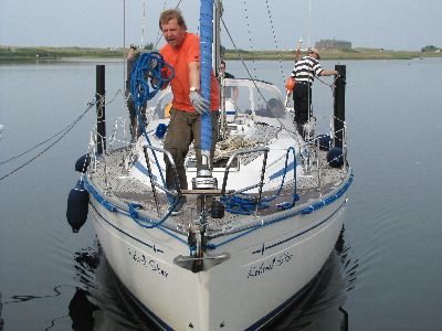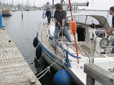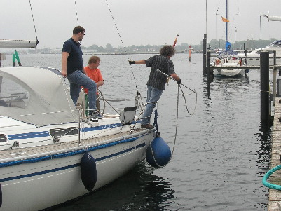 Festmachen an der Hafentanke: Mit der Vorspring in der Hand bei sicherem Abstand rüber auf den Steg ..