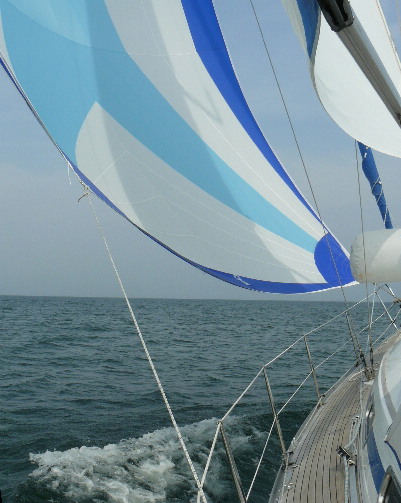 Segelspaß gibt's es erst nach den anstrengenden Notmanövern - Quick-Stop, Tear-Drop, Q-Wende. Besonders der Blister bringt uns nach vorn, aber natürlich wird alles sauber getrimmt.