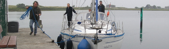 ... Ruder hart backbord, Maschine voraus und die Yacht klappt langsam an den Steg. Danach alle anderen Leinen über, fertig. Am Ende freut sich der Skipper auf einen Tag in der Heimat und es gibt sogar einen ganz edlen Schluck zum Abschied, nein, nur einen!