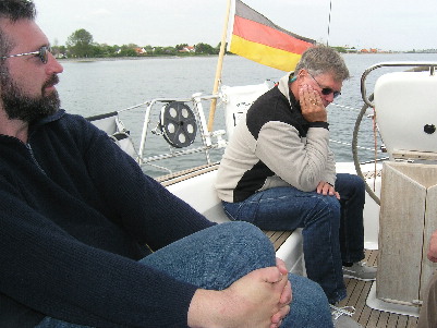 Der Prüfungsausschussvorsitzende in Lübeck wird angerufen, Stein und Bein geschworen, dass alles rechtzeitig erledigt worden ist - die Dschunxx haben sogar Kopien der Überweisungen an Bord. Damit konnten wir die Prüfer vor Ort dann auch überzeugen, die zeigen sogar viel Verständnis, beruhigen uns und sichern zu, dass wir geprüft werden. Allerdings müssen wir uns jetzt hinten anstellen, aber irgendeine Crew muss nun mal den Abschluss machen. Aufatmen an Bord und damit hat der Skipper schon mal seine "Prüfung" bestanden, sage ich Dir.