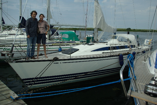 Marén, Matthias sowie Nelly (fast 15) und Max (beinahe 13) sind mit ihrer "Black Molly" ganz neu am Steg und herzlich willkommen. Die "Black Molly" ist ein viel bewundertes Waarschip, das der Voreigner nahezu im Alleingang gebaut hat. Bei Nordost, Ost oder Südost flüchten wir uns manchmal auf die andere Stegseite und sind hier immer gern gesehen.