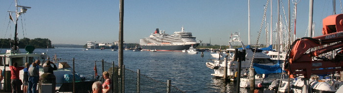 Danach aber leider ein grottenschlechter Kick gegen Österreich, der auch noch unverdient mit 2 : 1 gewonnen wird. Die Aussis können einem leid tun. Darauf wird hier rechts aber noch nicht angestoßen, das passiert viel später. Na und dann erfahren wir, dass wir morgen das zweitgrößte Passagierschiff der Welt erleben sollen, zwischen 0600 und 0700 soll die 92.000 BRT große „Queen Elisabeth“ hier einlaufen. Natürlich haben wir dazu unseren Logenplatz im Fischerei- und Yachthafen.
